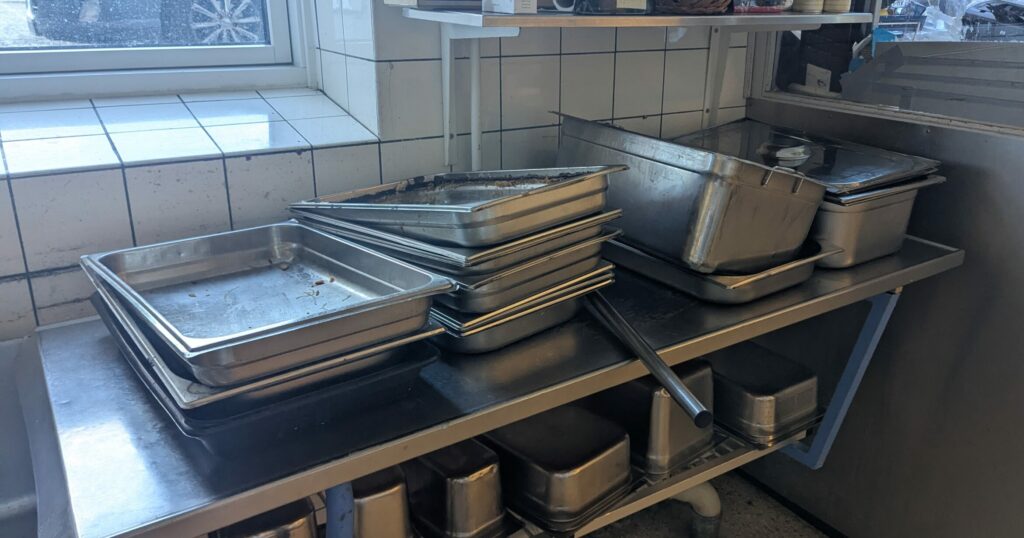 Pour ce premier semestre, par exemple, nous sommes une à deux fois par semaine de corvées de nettoyage et service du diner (pour Aimée) ainsi que du pots and pans (nettoyage des plats imposants utilisés par les cuisiniers et trop grands pour passer à la machine à laver) et lavage du sol de la cuisine (pour Nicolas) :